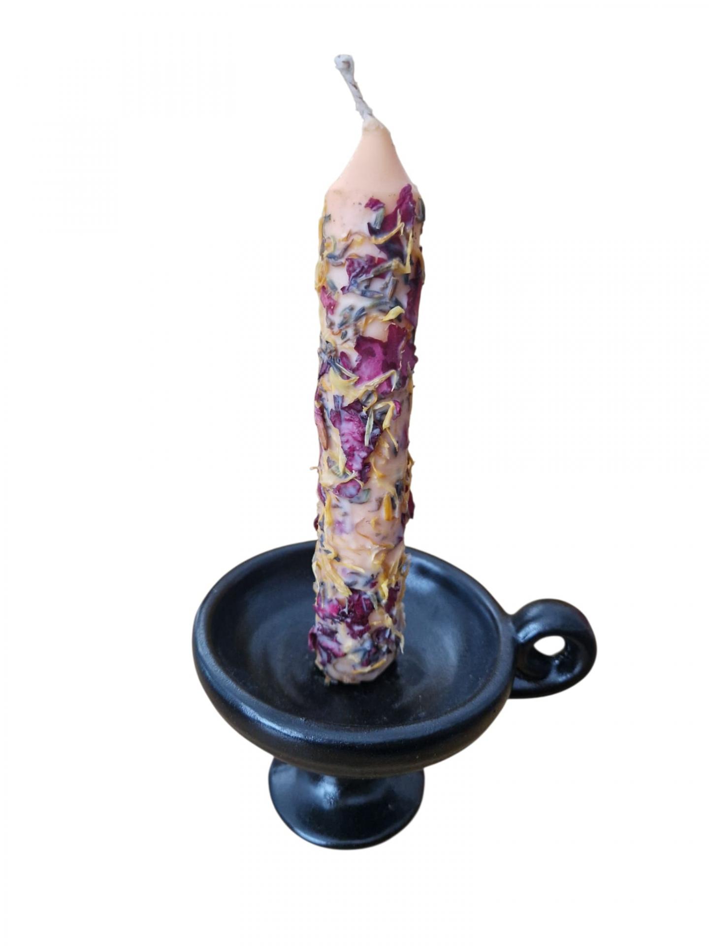La caja está compuesta de una vela ritualizada con instrucciones detalladas.