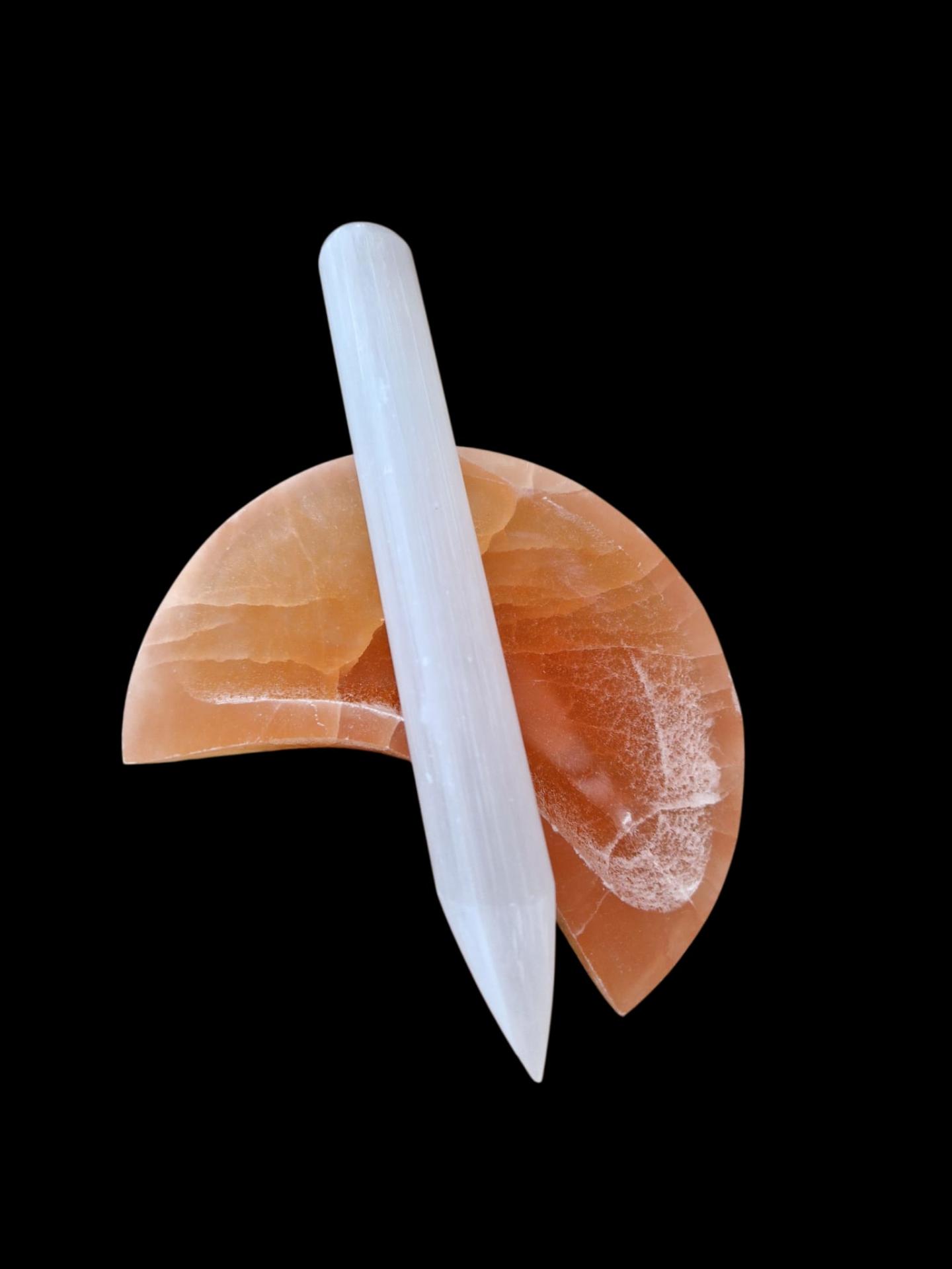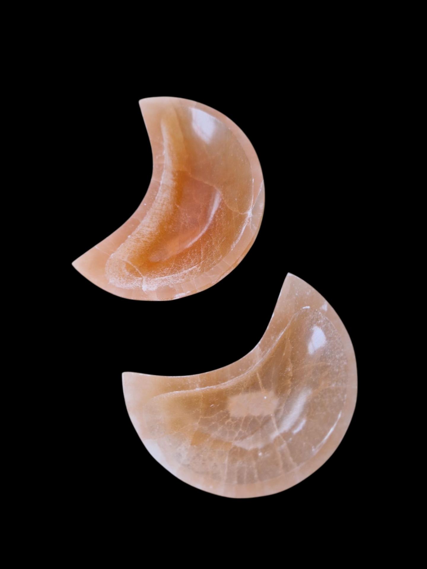 CUENCO DE PIEDRA SELENITA NARANJA CON TAMAÑO APROXIMADO DE 10 CM .