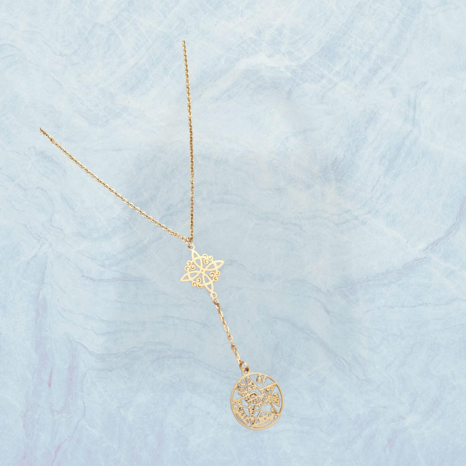Reconocido como un amuleto de protección por considerarse como un conductor para controlar las energías relacionadas al Aire, Agua, Fuego y Tierra gracias al Tetragramaton Estrella.
