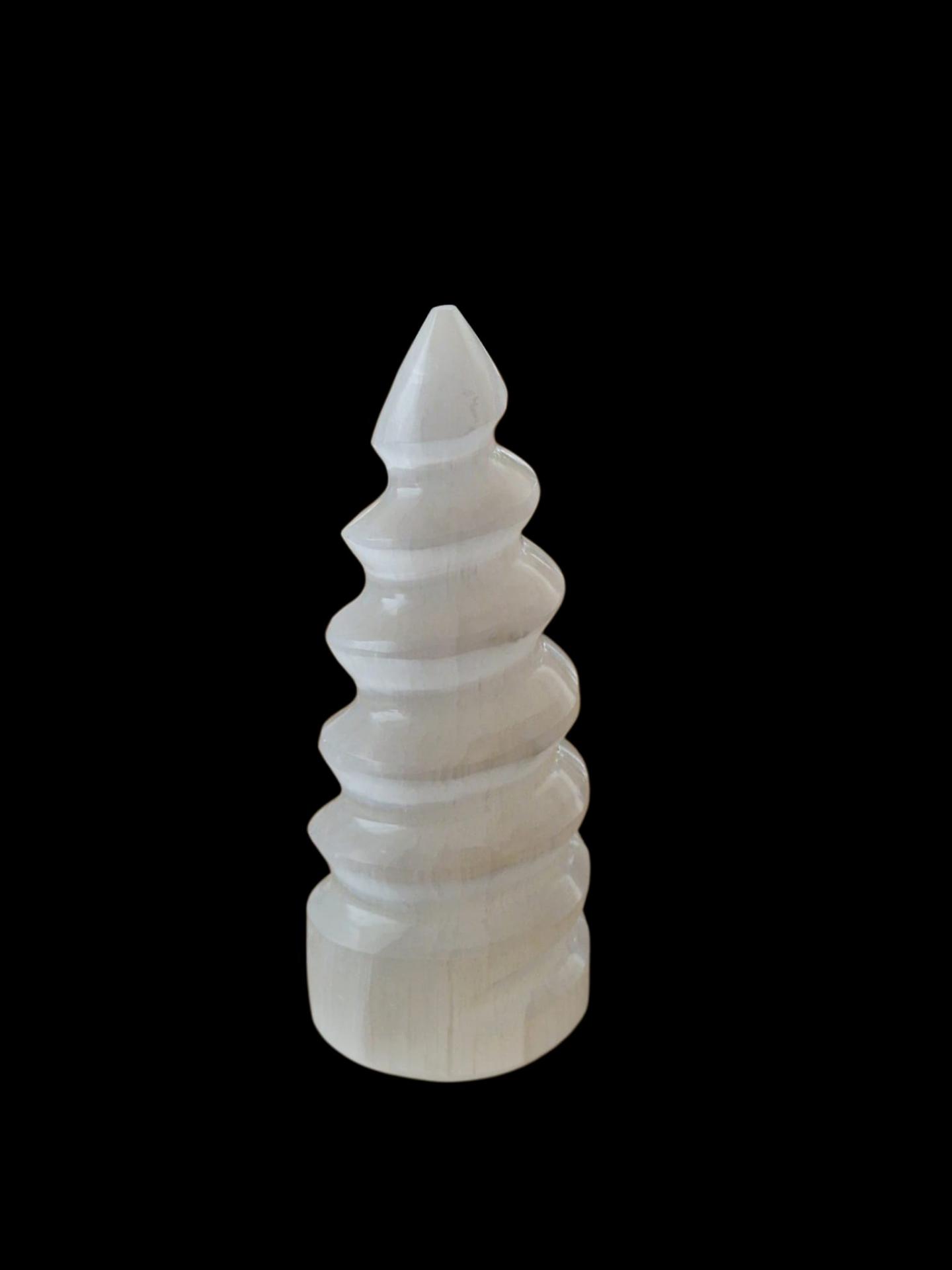 Selenita natural tallada en forma de espiral.
