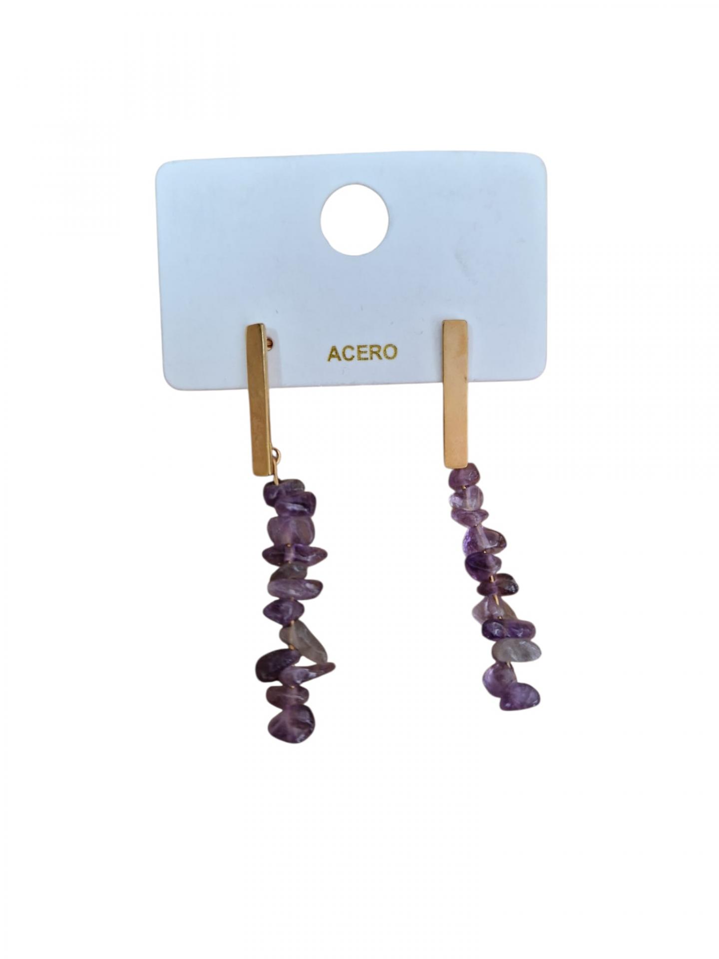PENDIENTES AMATISTA LARGOS Y ACERO INOXIDABLE