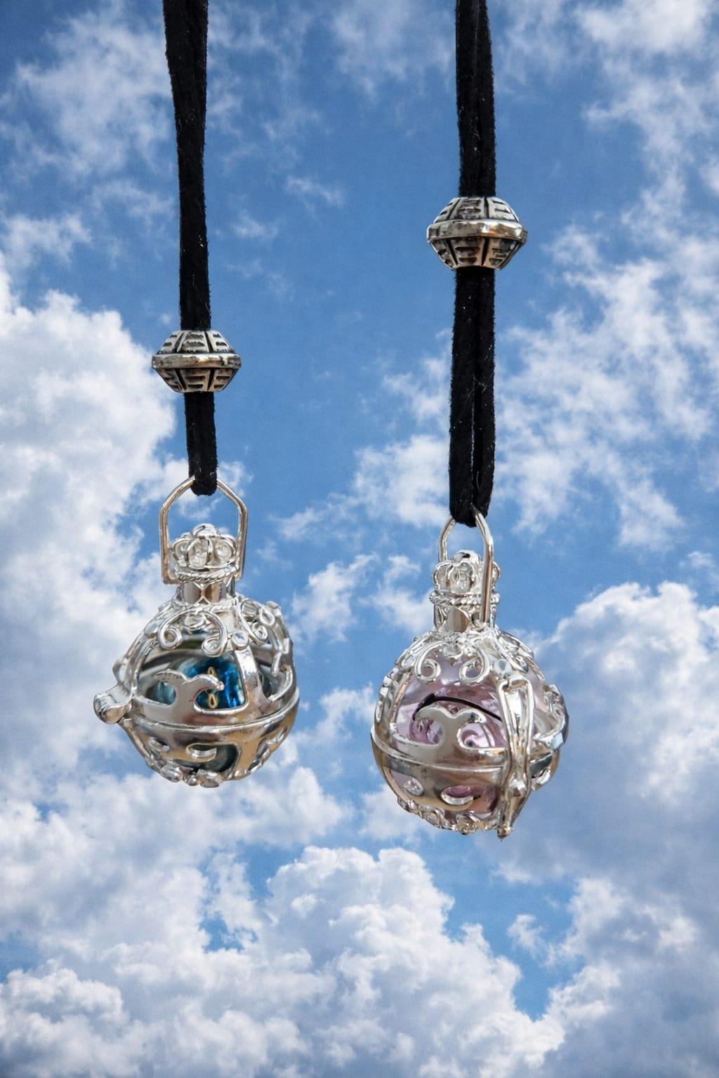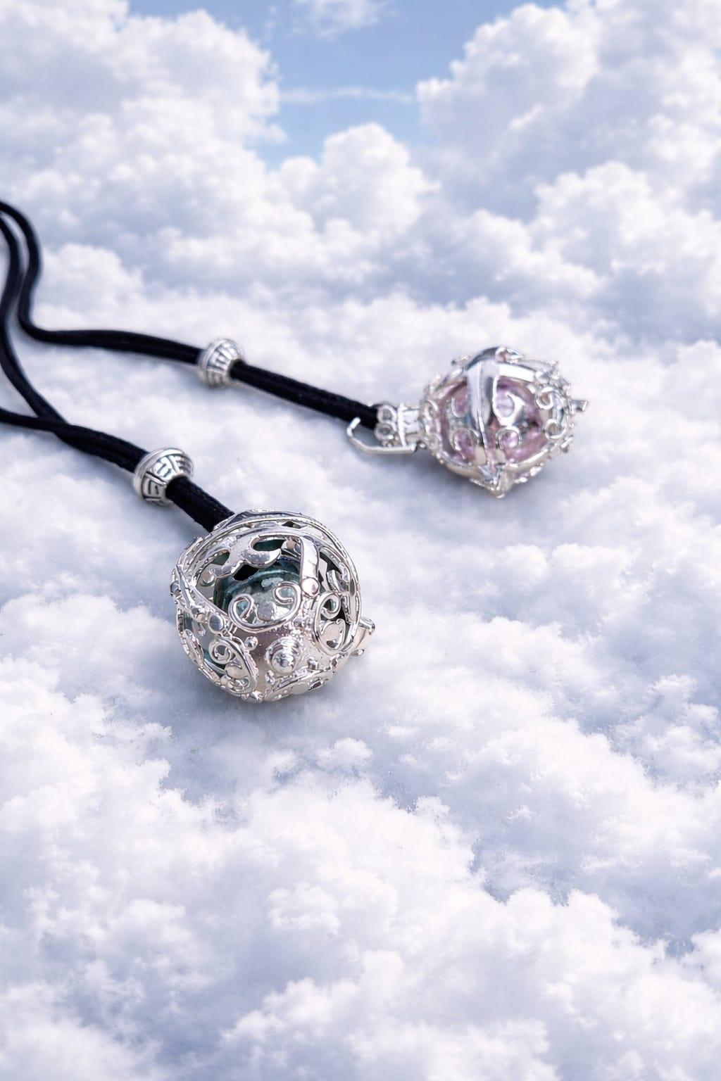 Un llamador de ángeles es un colgante esférico, generalmente de plata, que contiene en su interior una pequeña bola que emite un suave tintineo al moverse. Sirve para invocar al ángel de la guarda, atrayendo protección, paz y armonía al usuario, siendo especialmente popular entre embarazadas para calmar al bebé.Un llamador de ángeles es un collar con una pequeña esfera hueca que lleva dentro una bolita dorada. Al moverse produce un sonido suave y delicado — ese tintineo llama a tus ángeles guardianes, los invita a estar cerca y te recuerda que nunca estás sola