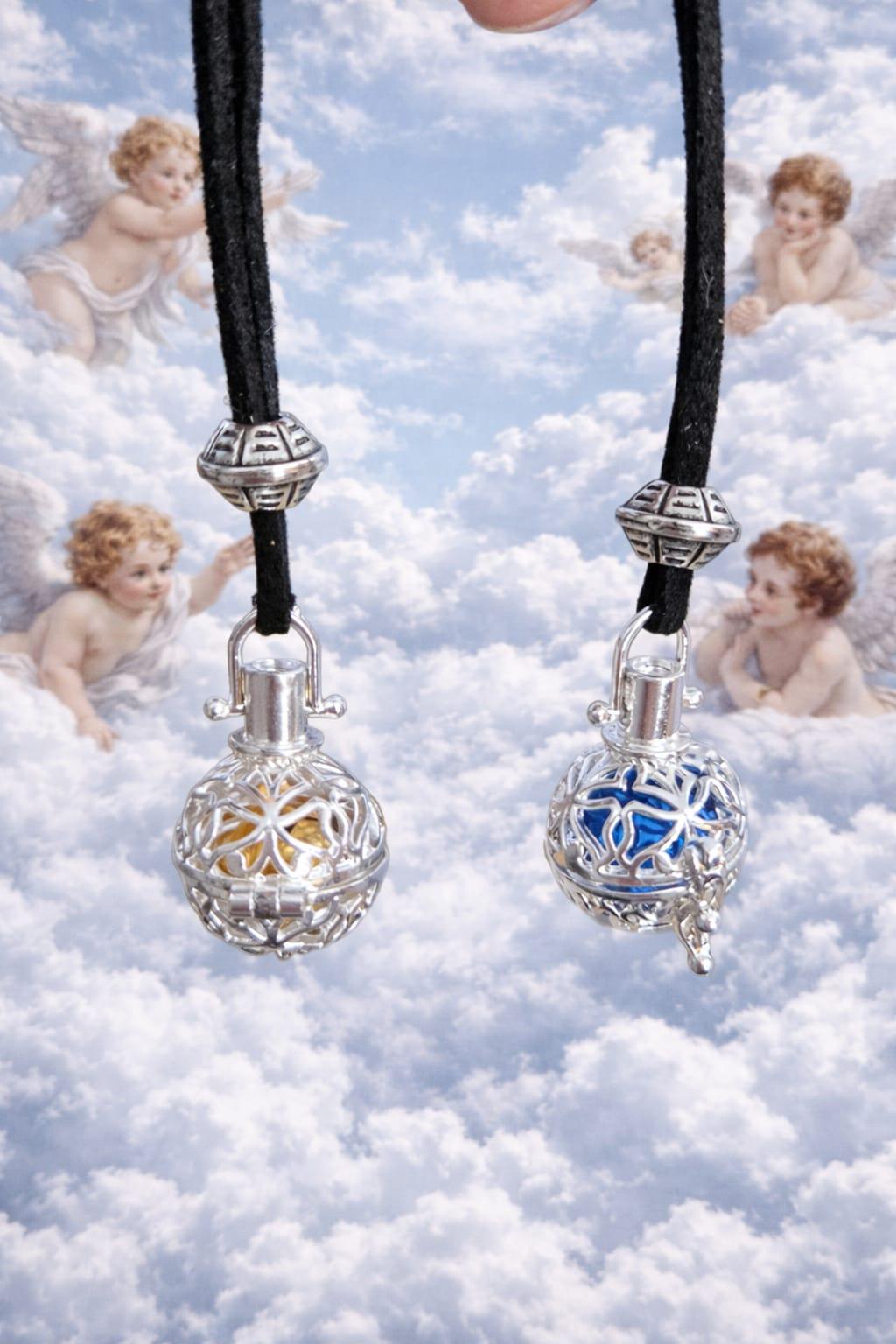 Un llamador de ángeles es un colgante esférico, generalmente de plata, que contiene en su interior una pequeña bola que emite un suave tintineo al moverse. Sirve para invocar al ángel de la guarda, atrayendo protección, paz y armonía al usuario, siendo especialmente popular entre embarazadas para calmar al bebé.Un llamador de ángeles es un collar con una pequeña esfera hueca que lleva dentro una bolita dorada. Al moverse produce un sonido suave y delicado — ese tintineo llama a tus ángeles guardianes, los invita a estar cerca y te recuerda que nunca estás sola