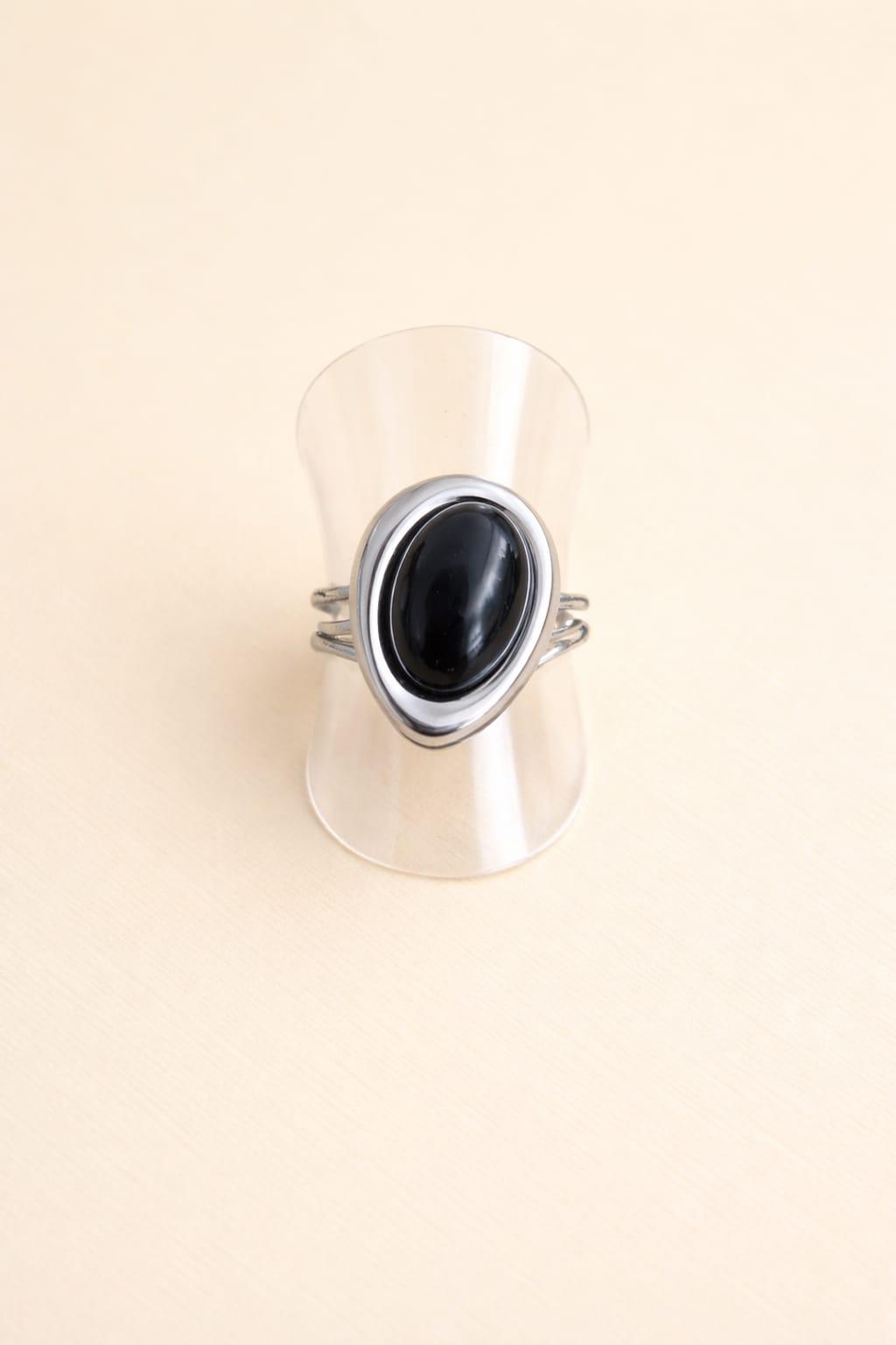 ANILLO ONIX OVALADO (PLATEADO)