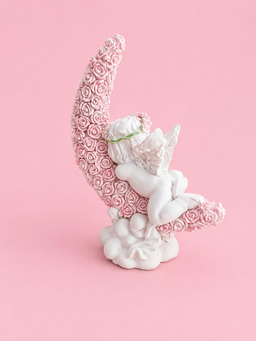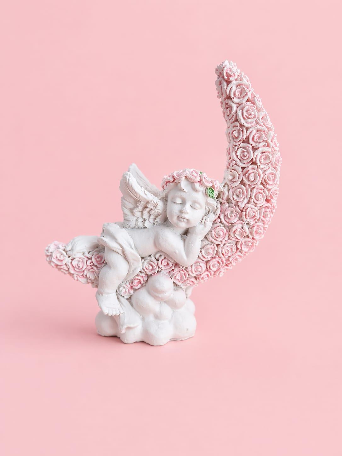 En el contexto esotérico y simbólico, un ángel recostado o descansando sobre una luna representa la armonía entre el mundo celestial y el subconsciente, simbolizando paz, protección espiritual y el dominio de la intuición sobre las emociones. Esta imagen evoca la tranquilidad del alma bajo la guía de la luz lunar.